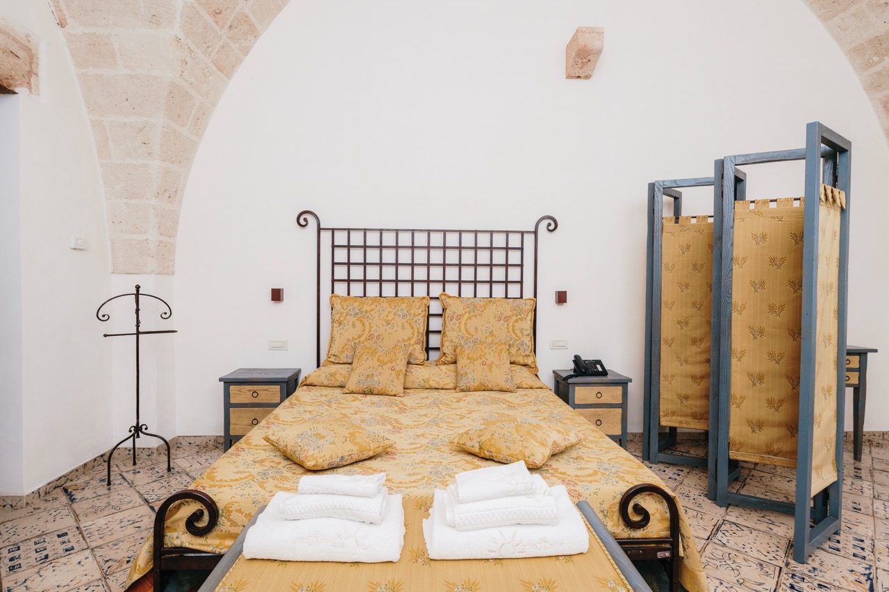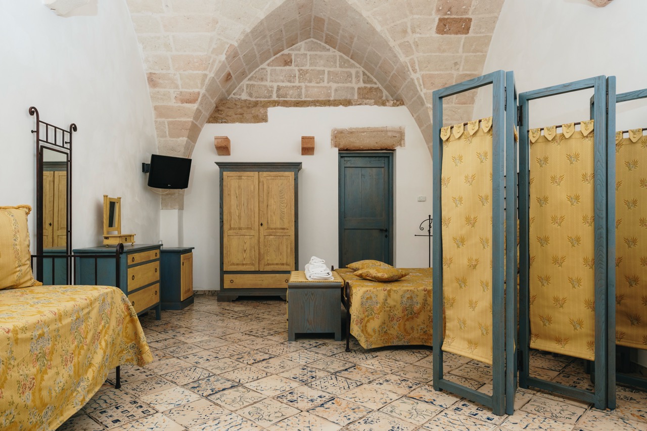 Le Junior Suite di Masseria Strazzati offrono ambienti particolarmente generosi, con spazi che permettono di muoversi in libertà e vivere la masseria in modo ancora più rilassato. Ogni suite ha una propria identità, con arredi che richiamano la tradizione pugliese, pavimenti decorati e soffitti a volta che valorizzano la luce naturale. Ideali per famiglie o gruppi che desiderano comfort e autenticità, rappresentano una soluzione perfetta per chi cerca un soggiorno silenzioso e rigenerante.