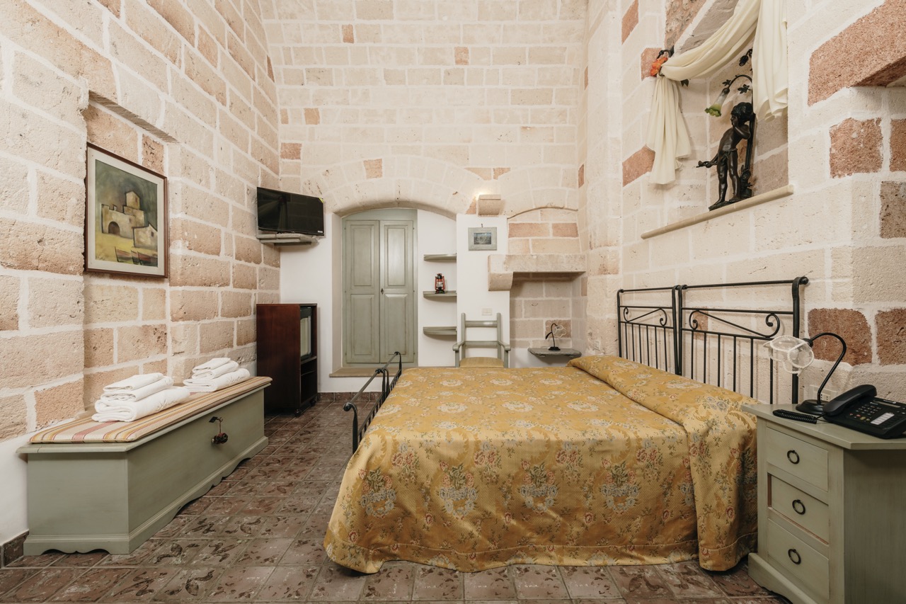 The Deluxe Room for two blends rural elegance with modern comfort. Original star-vaulted ceilings, soft natural light and traditional furnishings create a warm, inviting atmosphere — perfect for guests seeking a more spacious stay with authentic charm. Designed with couples in mind, it offers a refined balance between historic beauty and contemporary wellbeing.